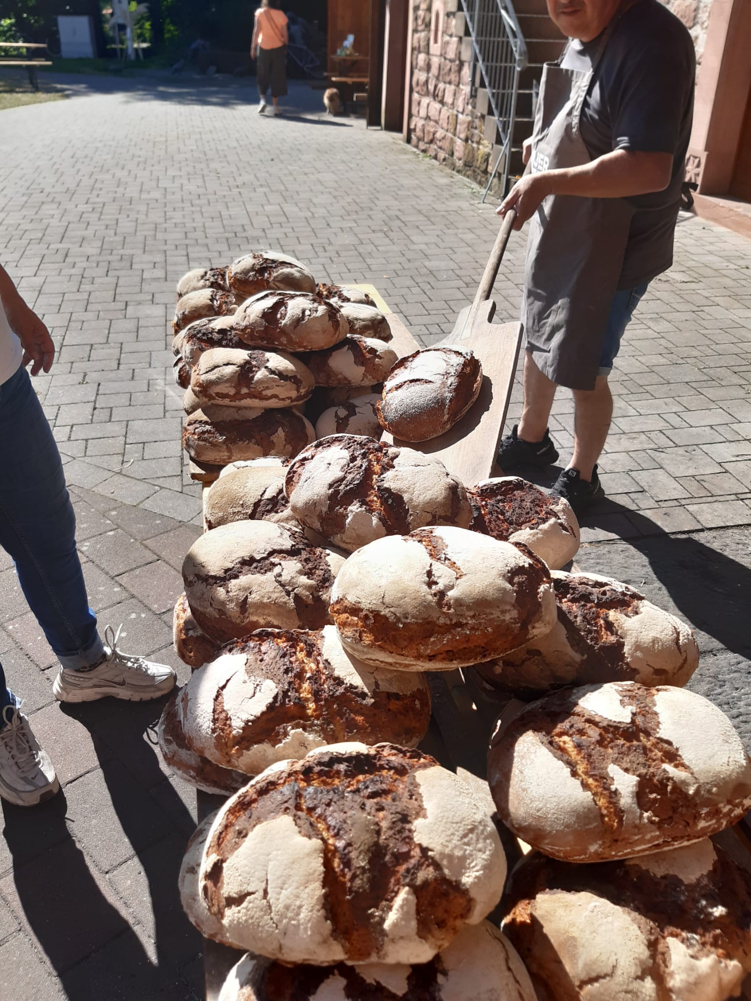Von April bis Oktober finden monatlich unsere beliebten Backtage statt. Unsere aktiven Bäcker backen dann zwischen 70 und 110 kg köstliches Sauerteigbrot. Diese Brote können dann vor Ort gekauft werden oder Freitags ab 18 Uhr frisch mit Hausmacher Wurst oder Odenwälder Kochkäs' genossen werden.